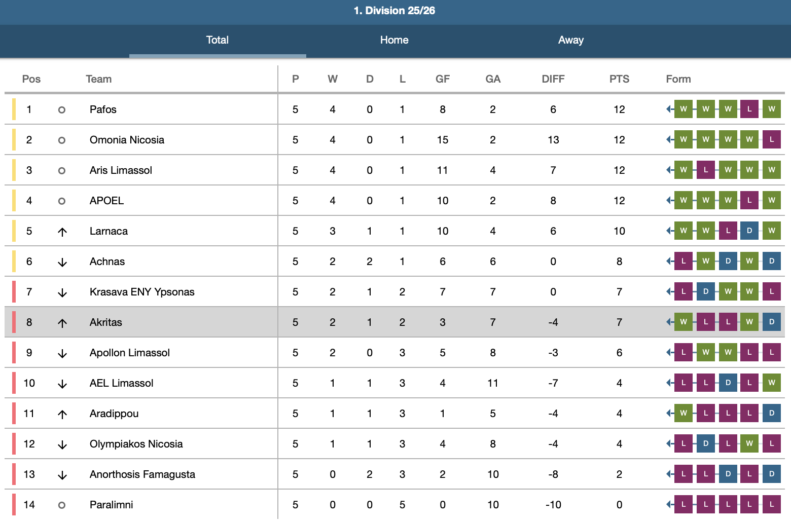 AKRITAS CHLORAKAS FC 🆚 APOLLON FC