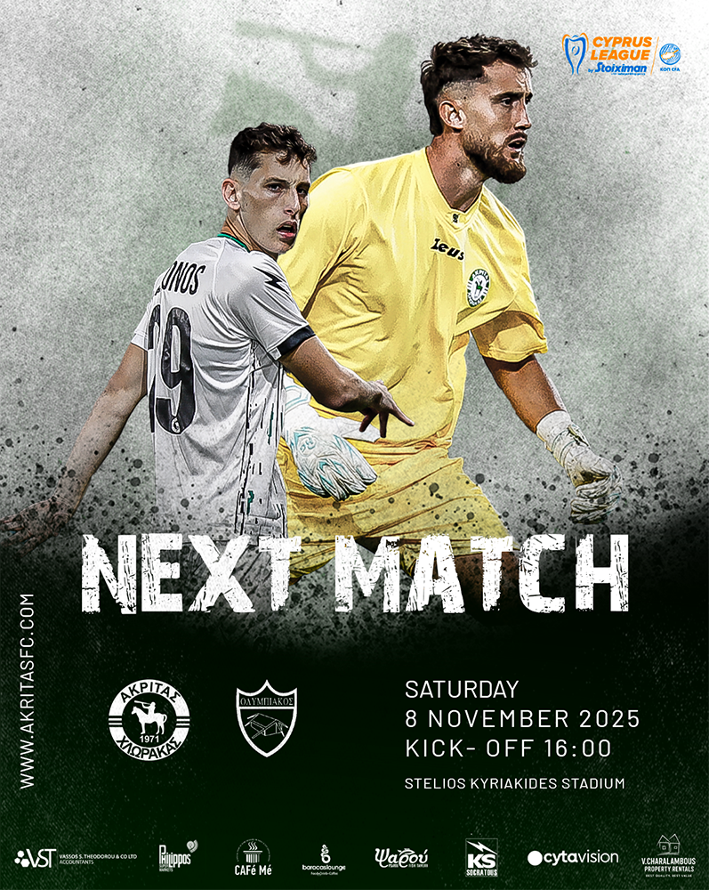 Εισιτήρια διαθέσιμα στα γραφεία μας στην Χλώρακα και online στο: https://tickets.akritasfc.com/